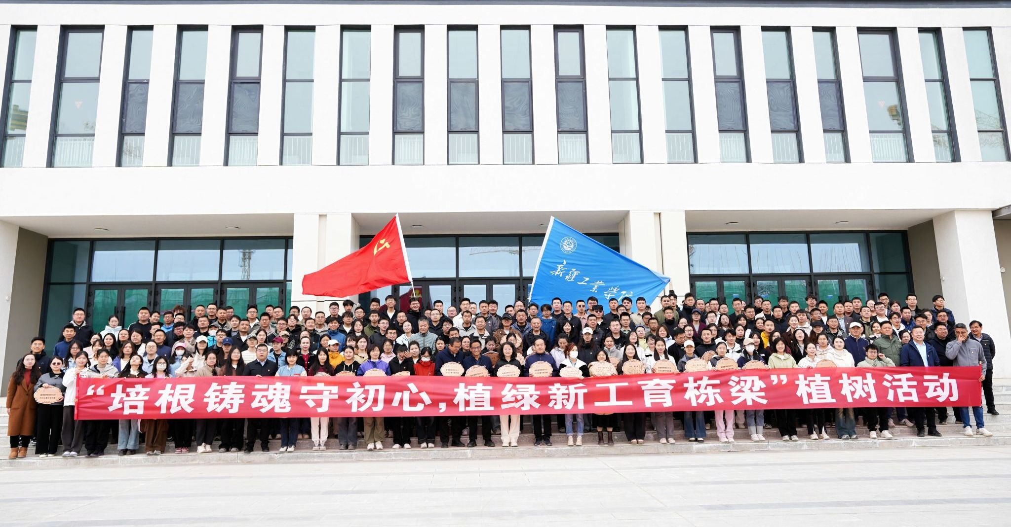 这是新疆工业学院建校史上首次全体教师参与的植树活动,承载着特殊的意义与使命。